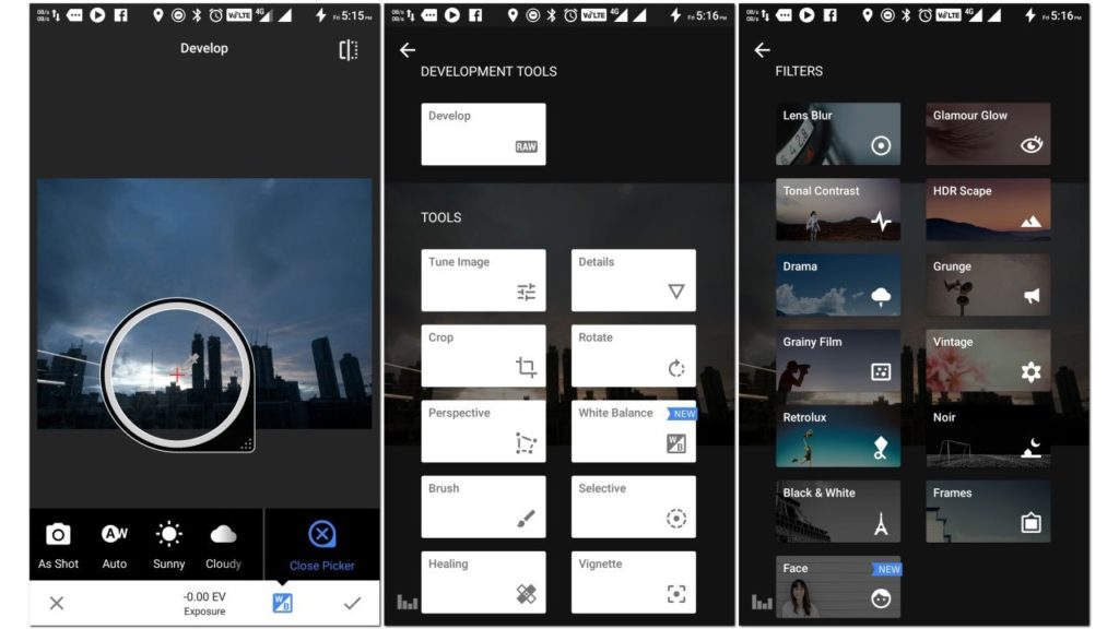 Questa applicazione di fotoritocco per Android ha una serie di strumenti che possono aiutarti nelle regolazioni della luminosità e del contrasto del colore. Inoltre, ha numerose funzioni di correzione geometrica. Inoltre, consiste in filtri che consentono la modifica di sfocatura dell’obiettivo, bagliore glamour, scape HDR, cornici e Noir.